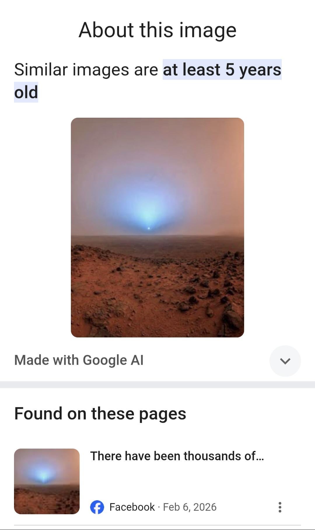 What do you mean "probably AI"? OP clearly said that it was a real photo of the sunset on Mars. Surely nobody lies on the internet.